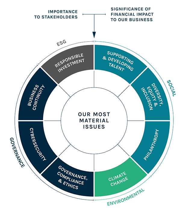 We pursue an ESG strategy that is designed to address the most material issues to our business, starting with a Corporate Sustainability program – how we lead by example through our own corporate operations – and then scaling through a Responsible Investment program – how we amplify our impact through our investment platform. We believe that by being a leader for integration of environmental, social and corporate governance factors